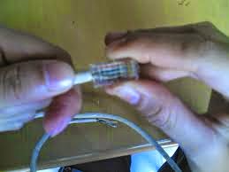 - Pastikan seluruh ujung kabel sampai keujung konektor sehingga bisa tembus oleh pisau yang ada di konektor